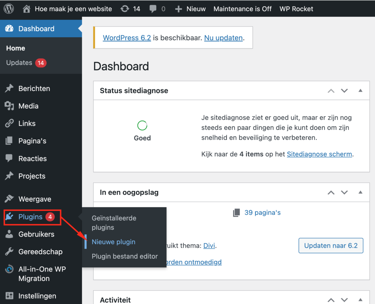 Stap 1: Vanuit je dashboard ga je naar plugins -> nieuwe plugin